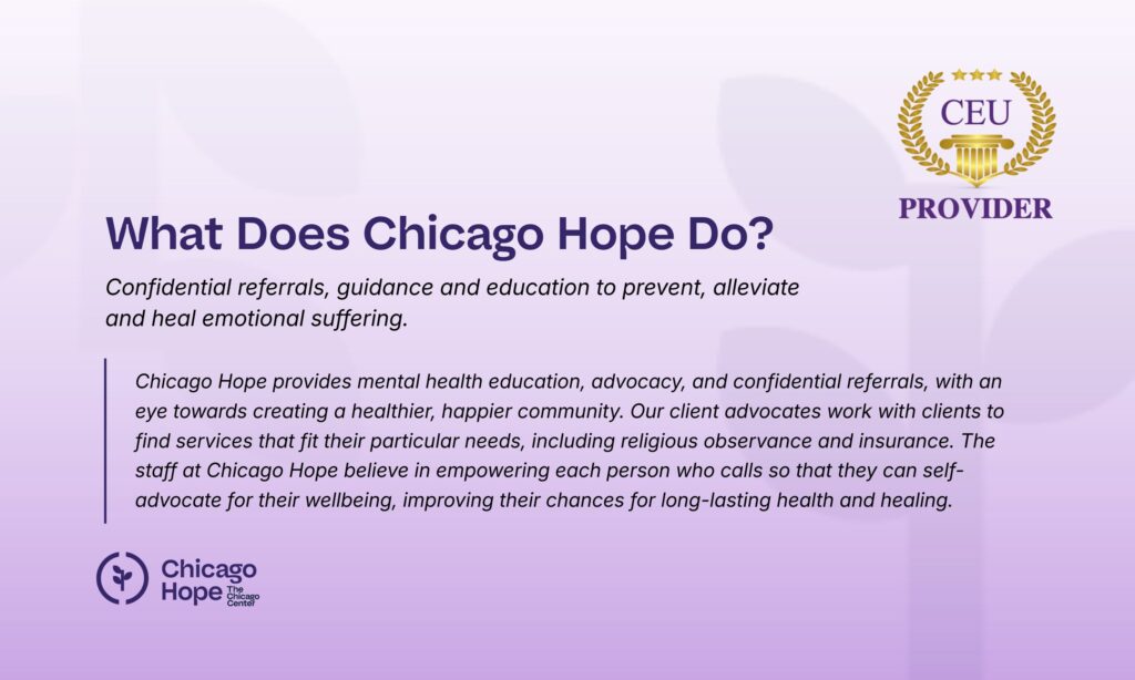 Thank you for choosing Chicago Hope for your CEU Credits.