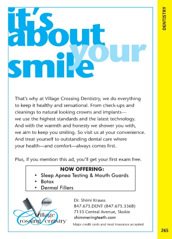 DENTISTRY NOW OFFERING: • Sleep Apnea Testing & Mouth Guards • Botox • Dermal Fillers illage shimmeringteeth.com rossing entistry 265 Dr. Krauss b.c. 10/18/07 10/18/07 6:23 PM Page 2