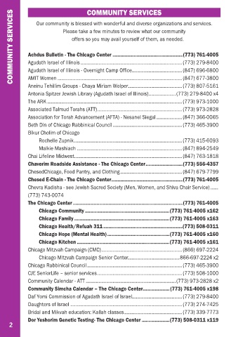 COMMUNITY SERVICES Achdus Bulletin - The Chicago Center .....................................................(773) 761-4005