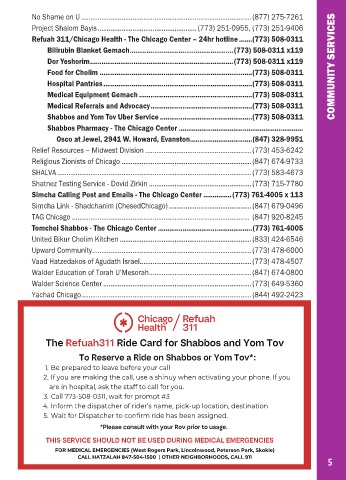 Food for Cholim .................................................................................(773) 508-0311 COMMUNITY SERVICES