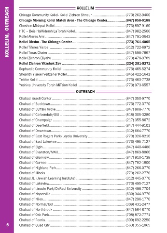 KOLLELIM, OUTREACH Chicago Community Kollel- Kollel Zichron Shneur .....................................(773) 262-9400